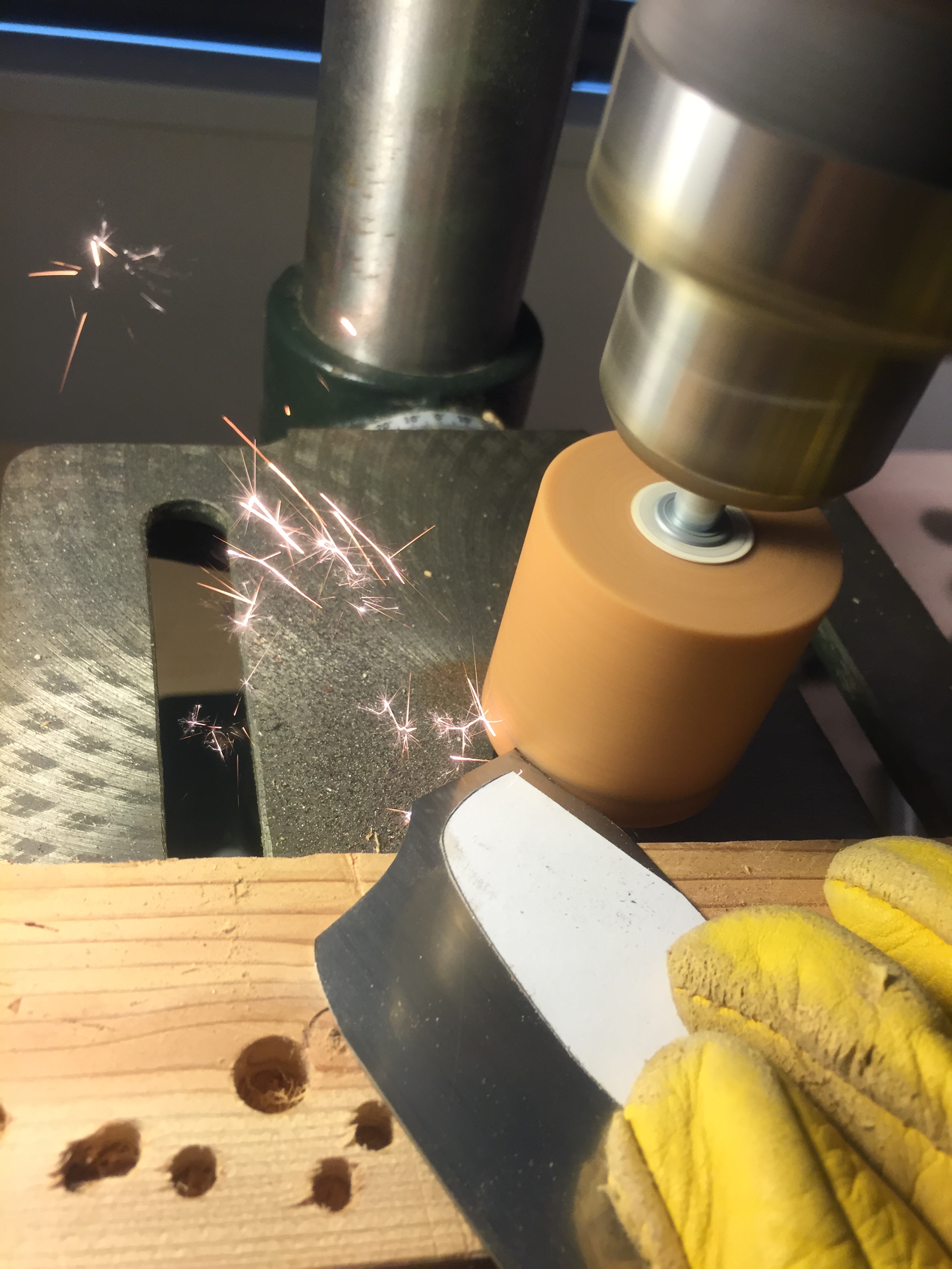 私は卓上ボール盤に軸付き砥石を取り付けて、端材の木材をレストにして支店を作っています。グラインダーは回転数も早く、自由に動かせるので作業スピードが速いですが、ボール盤を最大限に活用して工具は必要最低限にしています。