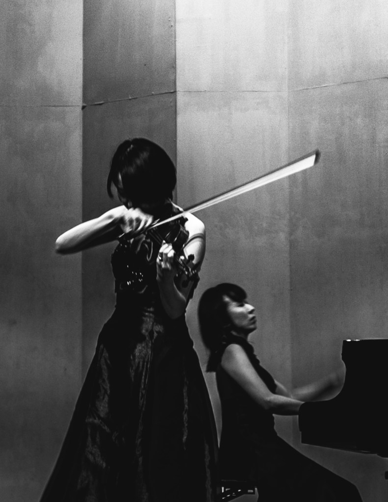 ヴァイオリニストは常に動いており、姿や表情など目まぐるしく変化し続けています。これまで機会がある毎に撮影にトライしましたがなかなか良い結果を残す事が出来ていませんでしたが、この2枚はとても気に入っています。曲と動きを予測し、その瞬間にシャッターをきるというコツが掴めそうな感じです。モノクロームはとてもシリアスな雰囲気を撮影出来ました。