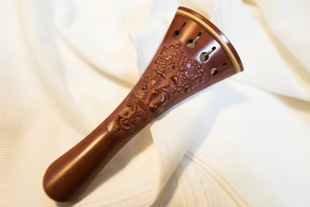 ペグに施されている彫刻の浮き上がっている部分はとても繊細で一般的に装飾が付けられている部分の彫刻も緻密です。