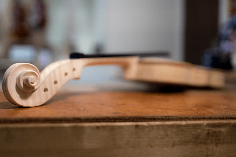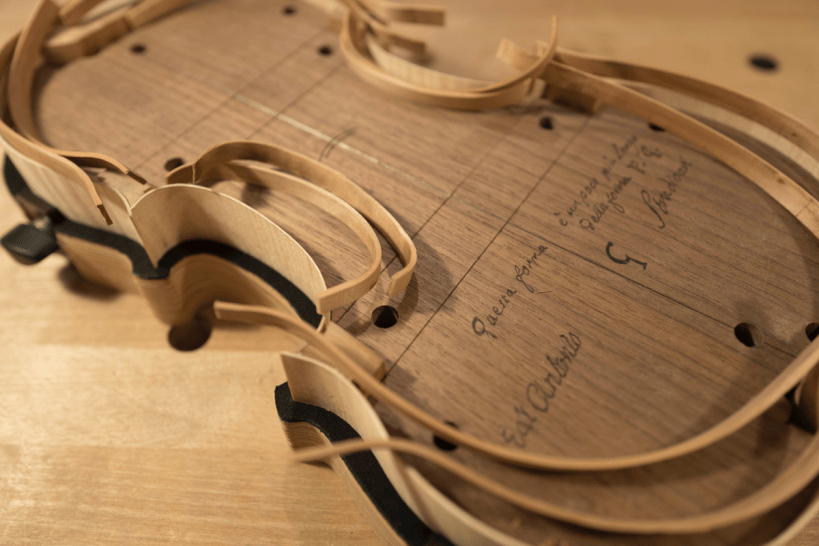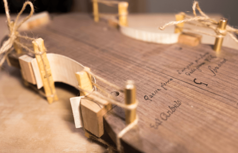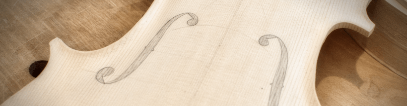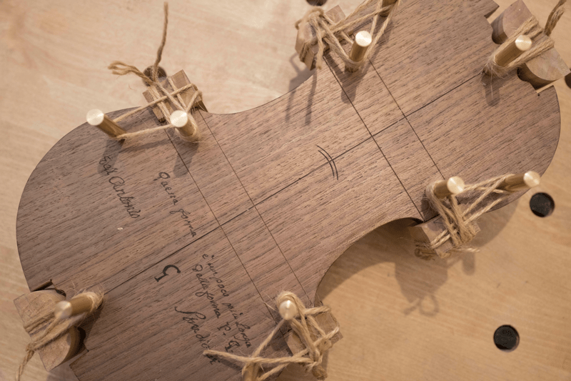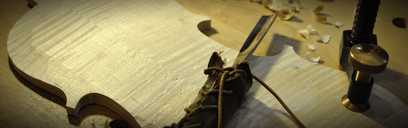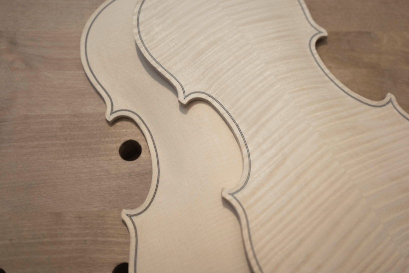 ヴィオラ(メディチ)とヴァイオリン(メシア)を板材から切り出してからおおよそ2週間が経過しました。トップ画像は荒削りの時のものです。