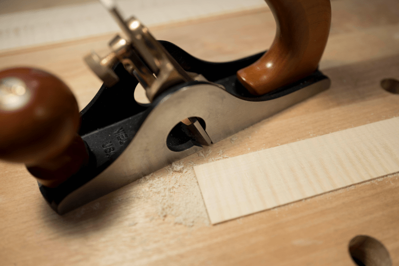 裏板のメイプル材の接ぎを準備し、接着面を最終仕上げしました。