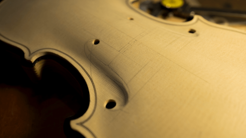 しばらくの間、ストラディヴァリの木型に取り組んでいますが、ようやく”G”が完成しました。